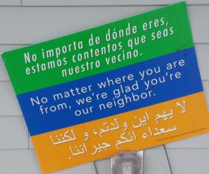 On a day like so many others, when the news is all about suspicion, disaster, war, cynicism, oppression and outright danger, I had simply decided to take what I expected to be a short morning walk. Now I know that there was nothing simple about it. In fact, I had gone on a pilgrimage: a pilgrimage of hope; a journey of inspiration and gratitude. A reminder that, not only does it take a village to raise and nurture new beginnings, but also a reminder that there are people right next door or down the street that are planting the seeds of a better world, growing promises for a healthier and safer home. Here, in one small neighborhood in one small village, I had encountered the generosity of a teenager giving back to their community, gardeners who put wild things first, who let wild plants grow within and among the flowers, reducing grass that needs mowing and eliminating noisy and polluting leaf blowers. I saw invitations to raise funds for some of our differently abled citizens, yards signs that announce respect for marginalized communities, poems that inspire readers. Little and big free libraries, a building that houses music, establishes community, encourages and inspires faith, hope and love. I saw signs of thoughtful land stewardship, of reducing waste, of welcoming birds, butterflies, and the bees who are as much our neighbors as the folks next door.
